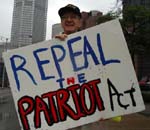 Three dozen participated in a hastily-organized protest of John Ashcroft on September 22 despite a heavy rain. Ashcroft spoke at the Marriot at Chatham Center at 4:30 to defend the USA PATRIOT Act and drum up support for an expanded version of the bill, called the VICTORY Act, to a group of local law enforcement officials. His arrival was delayed briefly because of a suspicious package that turned out to be harmless.